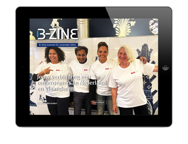 B-Zine is het online magazine waar BNI-leden zich kunnen presenteren. Het biedt een uitstekende manier om zichtbaar te worden voor BNI-leden en andere ondernemers in diverse regio's. We hebben een handig document gemaakt waarin je precies ziet hoe je je tekst en beeldmateriaal moet aanleveren. Laat je je teksten en/of foto's door iemand anders maken, stuur dan dit document ook door. Ken je geen tekstschrijver of fotograaf? Ga naar BNI-Connect en vind een BNI-professional in jouw omgeving. Heb je nog vragen?